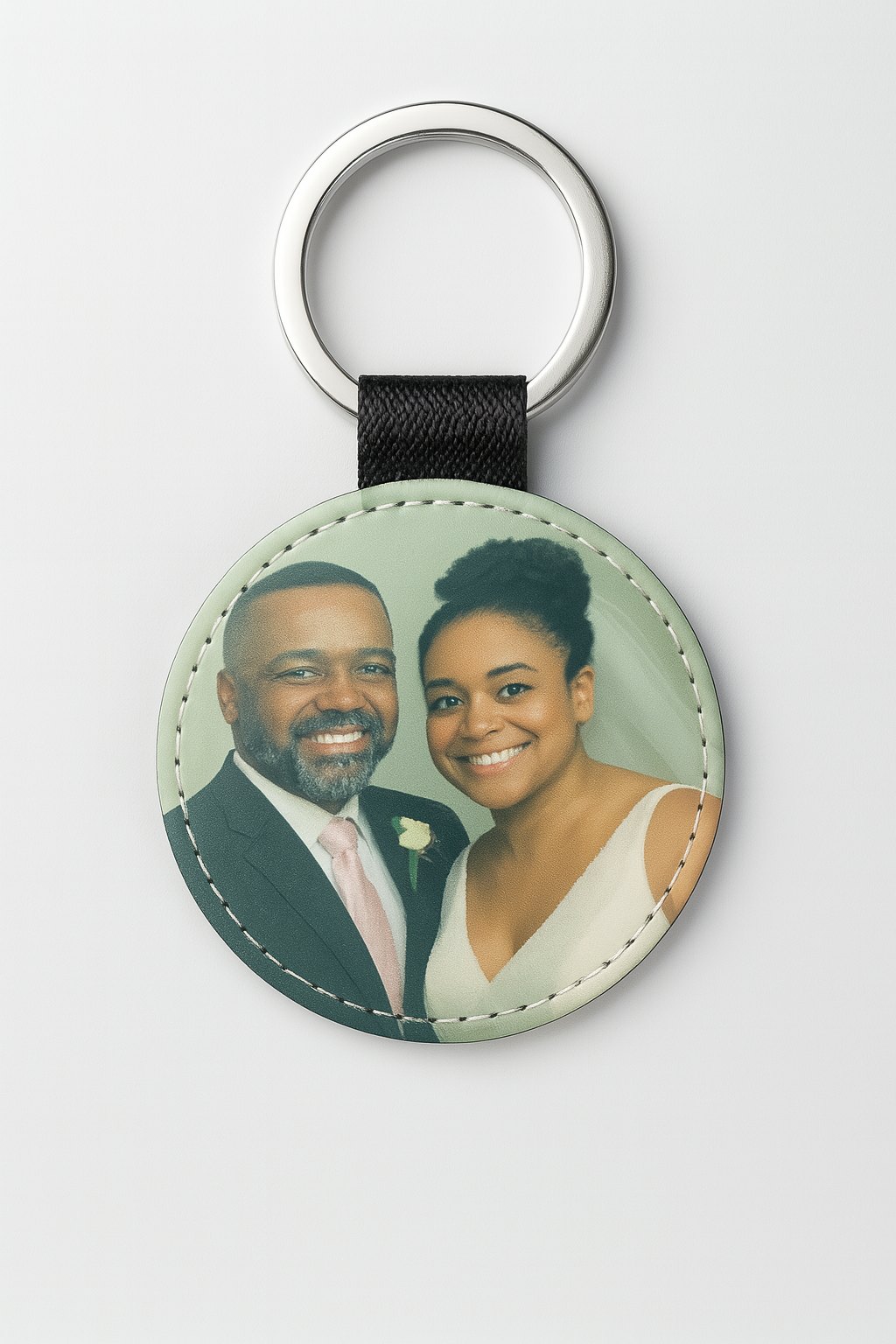 Keep your most treasured memories close wherever life takes you with this Custom Round Leather Photo Keychain. Thoughtfully designed with a smooth faux leather surface and detailed stitching, this keychain features a vibrant, full-color photo of your choice—perfect for honoring a special moment, person, or occasion.